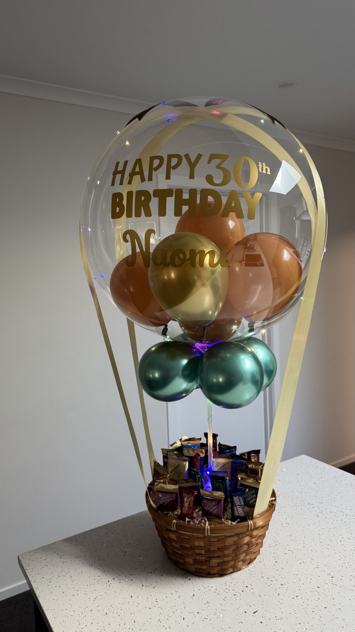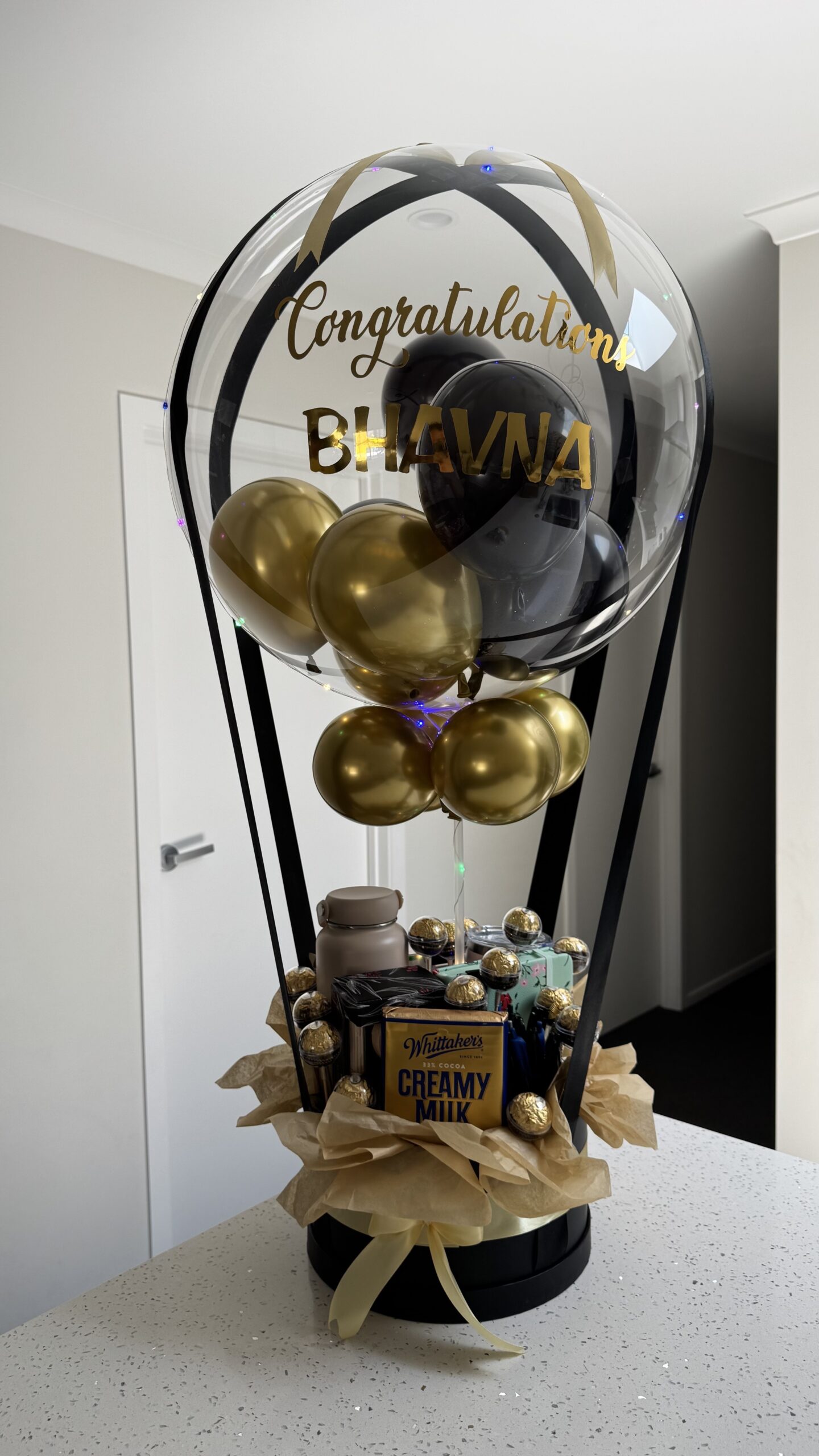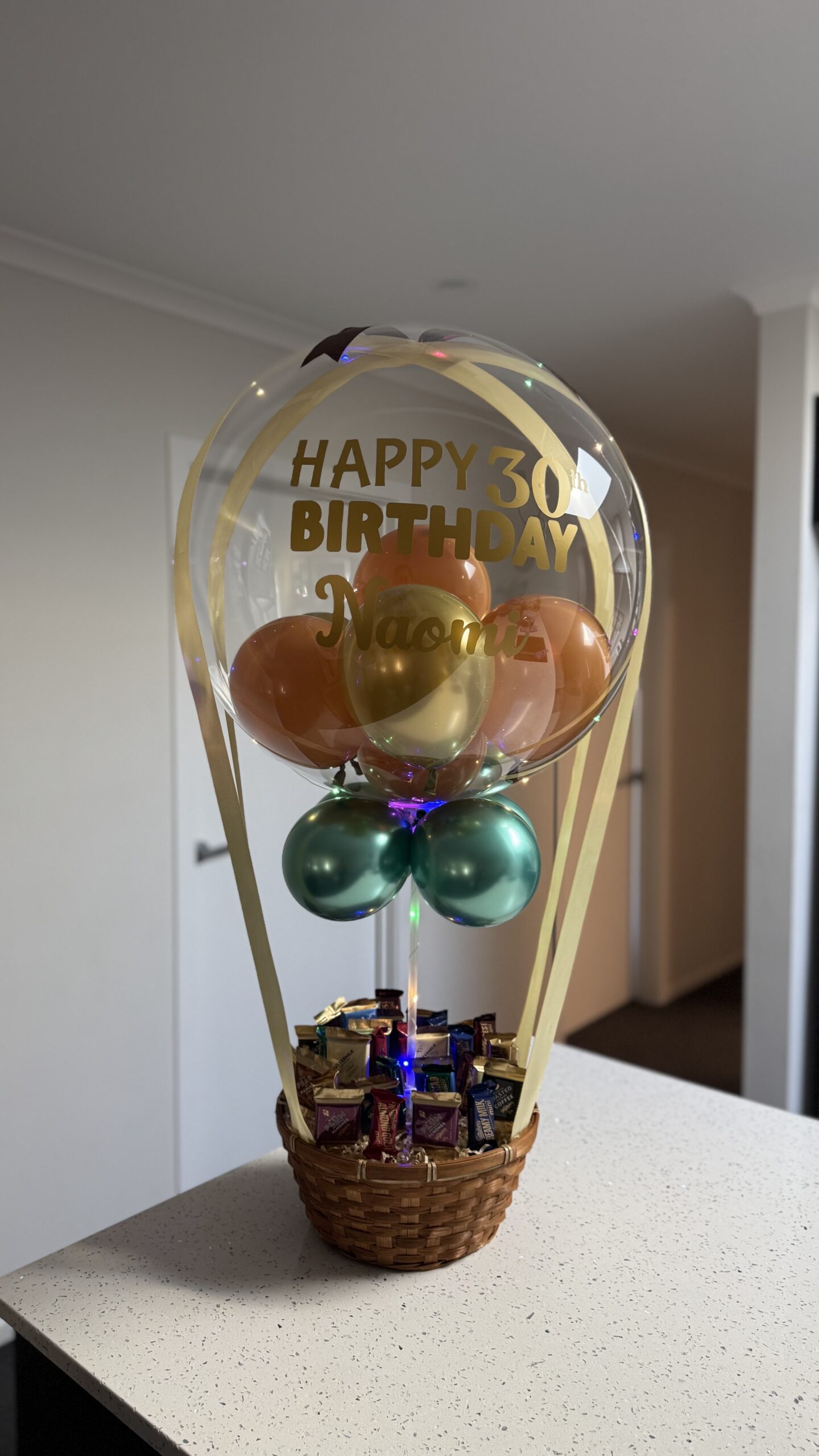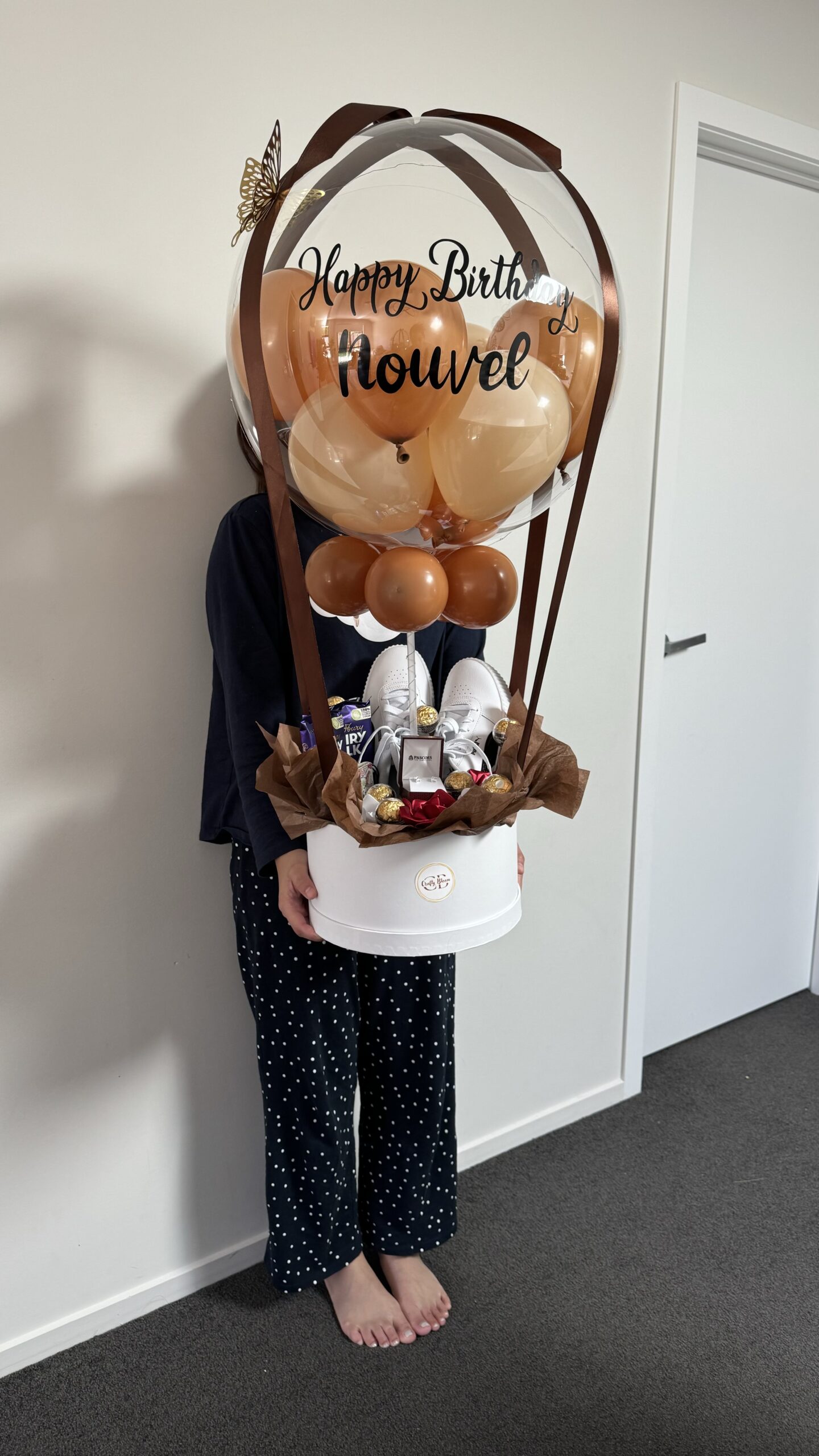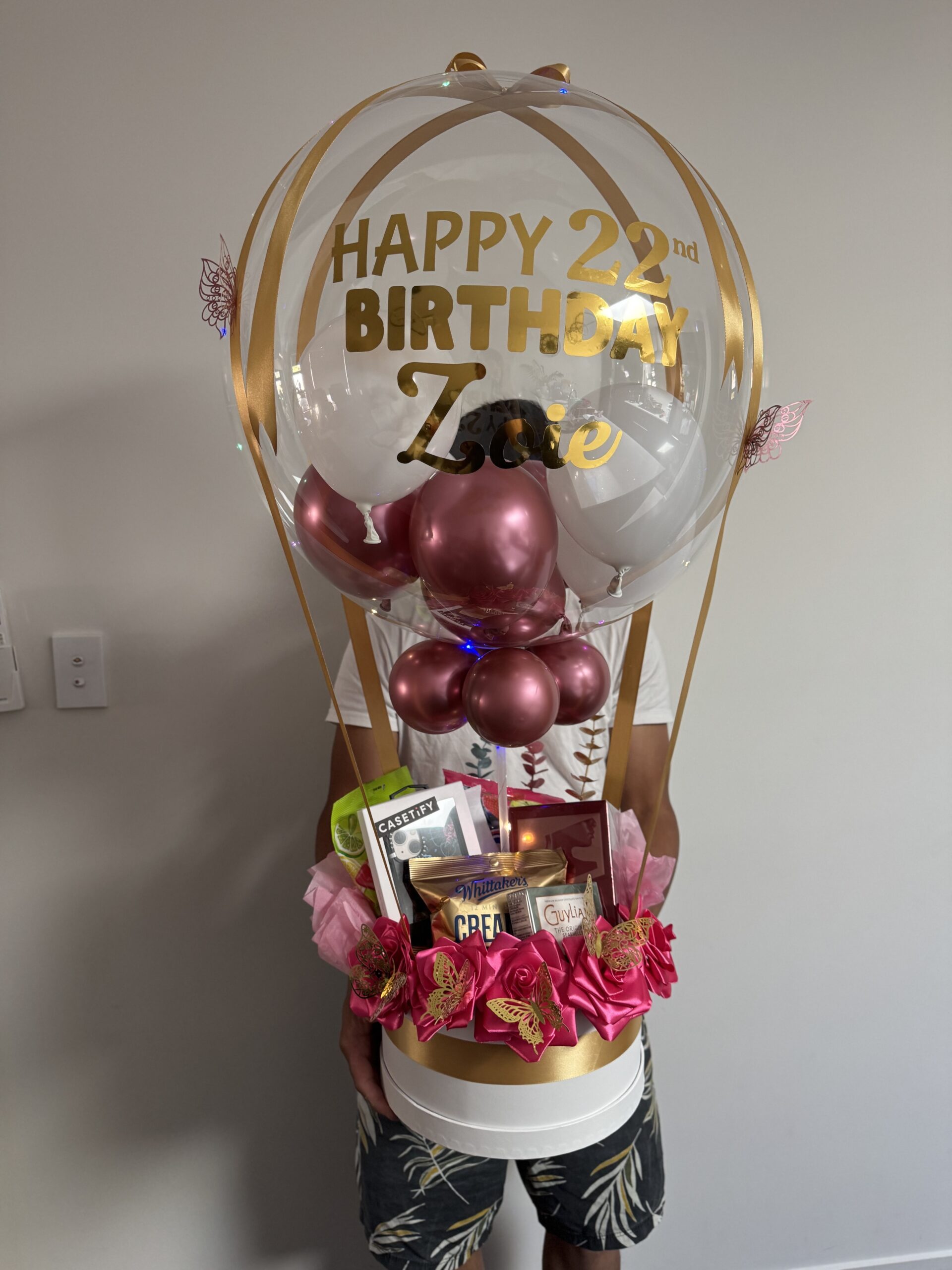Full Luxe Balloon Bundle – Perfect for any occasion! This all-in package includes a large box, a big custom balloon in your chosen color, free LED light, and delicate butterflies for that magical touch. Just bring your gift, and we’ll style and arrange everything beautifully based on your preferences — ready to impress the moment it’s opened.
